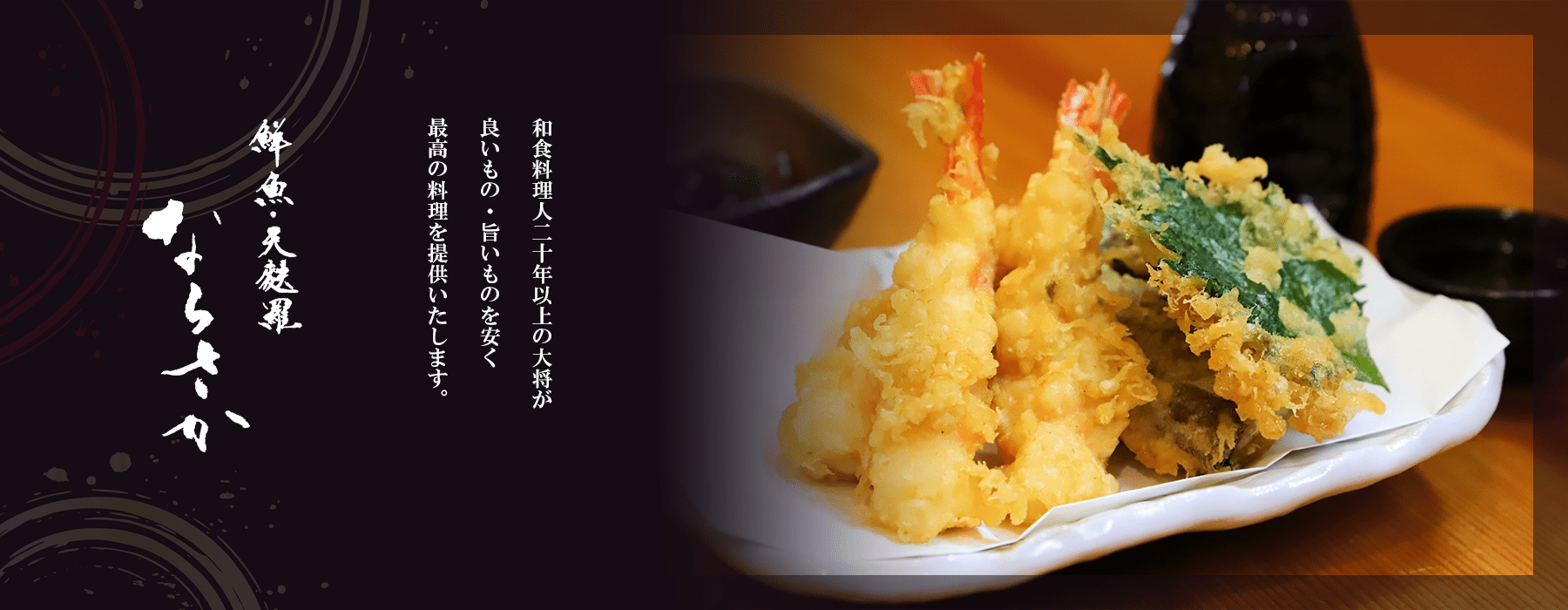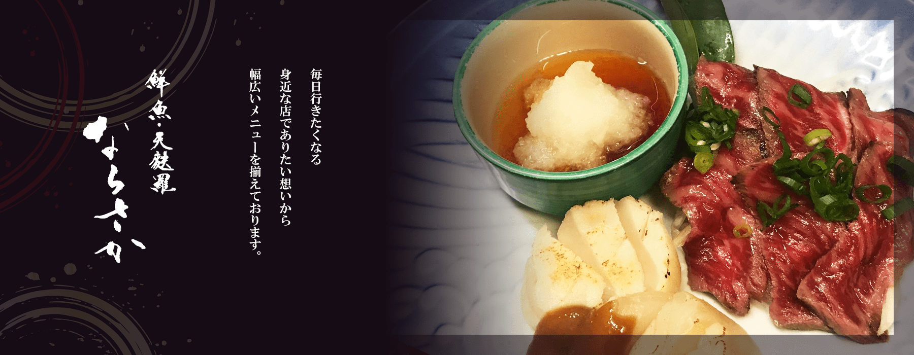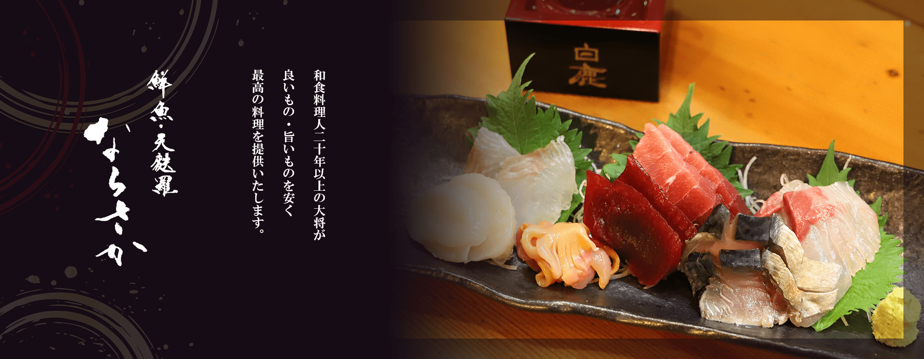 この度は、鮮魚・天麩羅ならさかのホームページをご覧いただき、ありがとうございます。