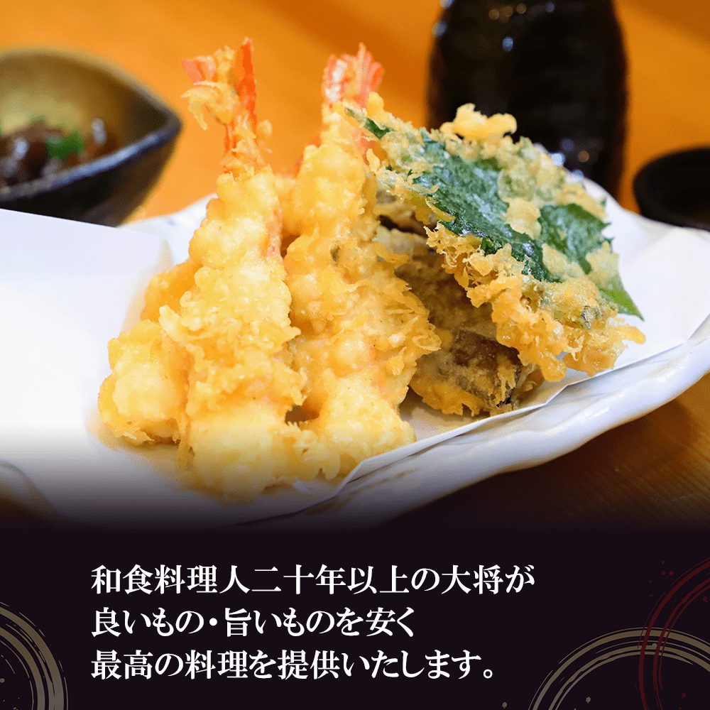 こだわりの食材を使用し、和食料理人の大将が作る天ぷらは、常連のお客様が必ず注文する一品です。
