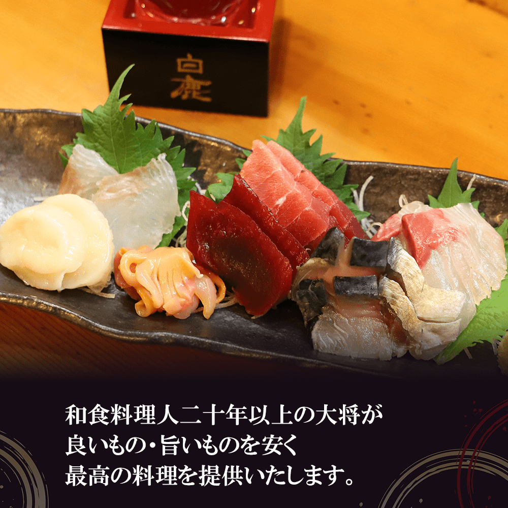 「安くて旨い料理」にこだわり、毎日新鮮な魚介を豊洲市場から仕入れ、最高の一品をご提供いたします。